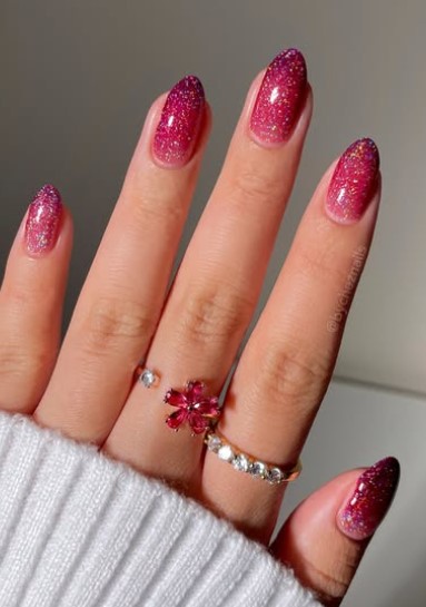 Soft pink ombre fading into a deeper shade is dreamy and flattering. Almond nails make the gradient look smooth and elegant.