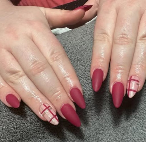 Matte finishes are a big trend right now. Matte red almond nails look bold, modern, and incredibly stylish for Valentine’s Day.