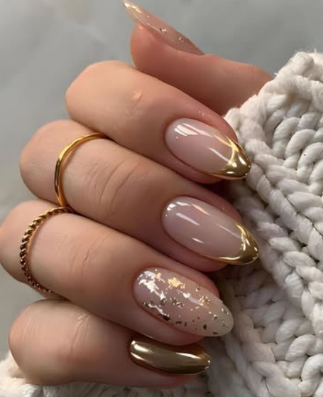 Gold-Accented Almond Nails