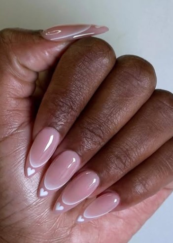 Almond French Tips with Hearts