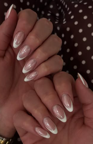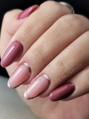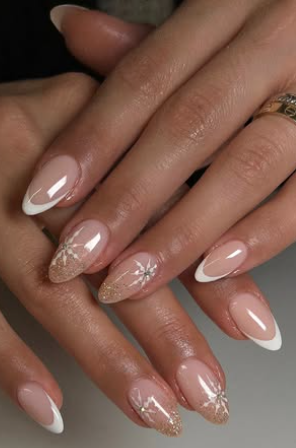 Classic nude nails with glittery tips are elegant and perfect for any holiday event.