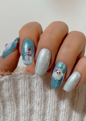 A nude manicure paired with a cute snowman accent nail makes for a fun yet understated holiday look.