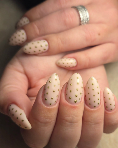 Combine white and gold dots over a nude base to create a playful but elegant pattern.