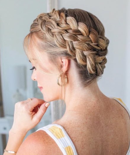 A braided crown looks soft, romantic, and perfect for springtime. This hairstyle wraps a braid around your head like a crown, giving it a dreamy and elegant appearance.