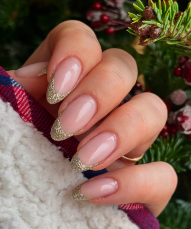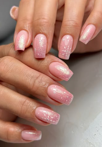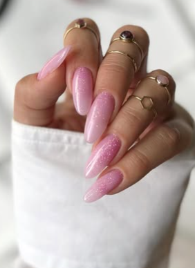 Glitter that starts at the tip and fades into a soft pink base. Sparkly and elegant all at once.