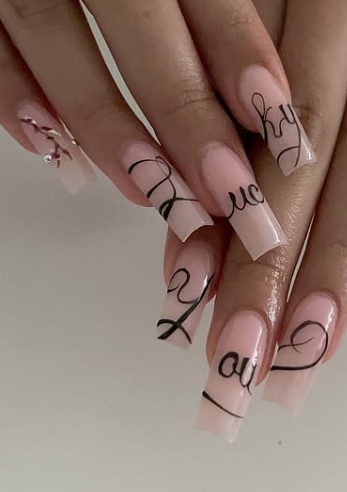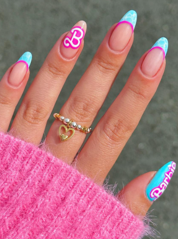 Have one nail with cute cursive writing like “Love,” “Doll,” or “Slay”—all in Barbie’s classic font.