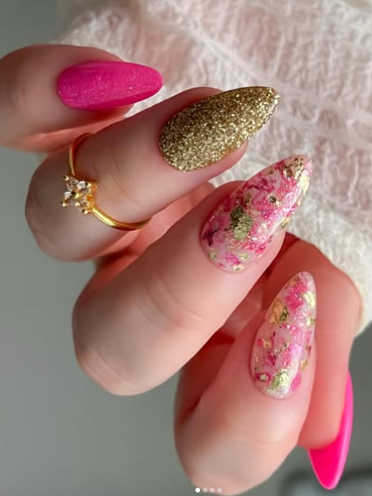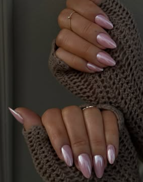 Metallic pink chrome gives off that high-gloss, futuristic Barbie look. Think shiny, bold, and unforgettable.