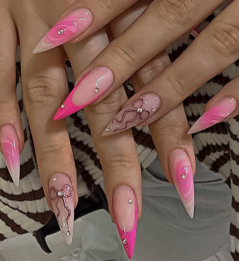 A soft blend from light pink to darker Barbie pink gives a dreamy effect that looks chic and classy.