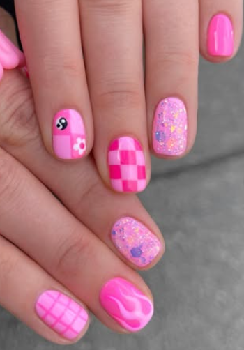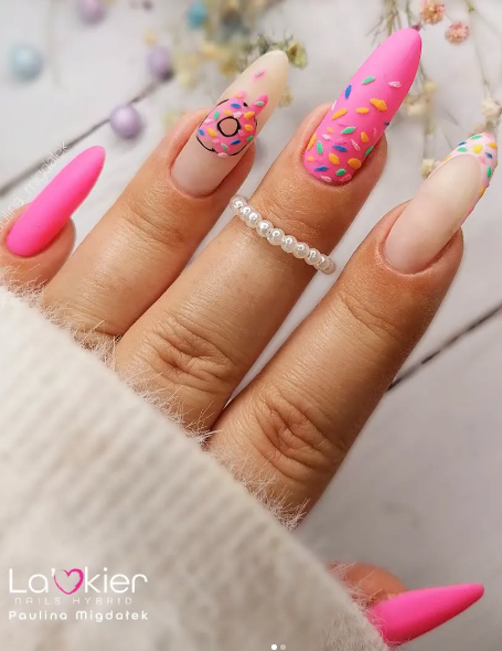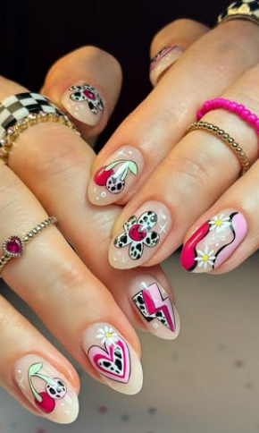Combine Barbie pink with designs of cupcakes, hearts, or candy art for a sweet and cute nail theme.