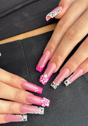 Want a bit of edge with your pink? Try neon pink flames over nude or clear acrylics for a fierce twist.