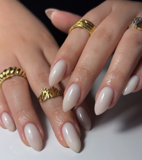 Milky white nails are calm, classy, and incredibly popular this spring. They pair beautifully with glossy finishes and look amazing on any nail length.