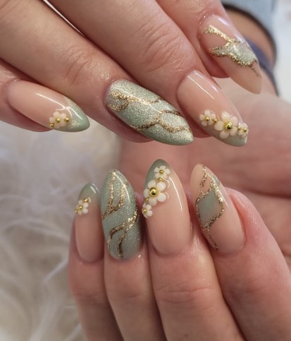 Tiny flowers on one or two accent nails are a huge Easter trend. They feel delicate, feminine, and not too busy—perfect if you want cute nail art without overdoing it.
