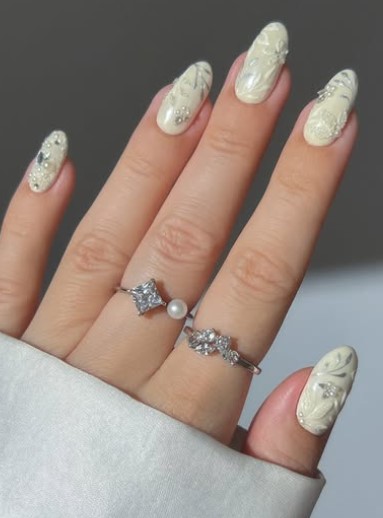 A touch of glitter adds sparkle without being too bold. Think fine shimmer over pastel shades for a soft, glowing effect.