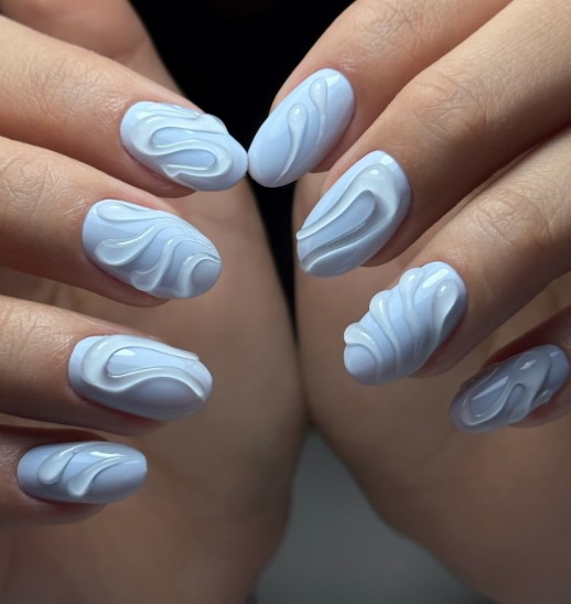 Swirl nail art in pastel shades is trendy and fun. It adds movement and creativity to your nails while still keeping the look soft and spring-friendly.