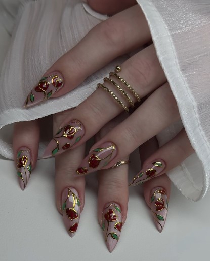 For a bold look, black nails with gold accents feel powerful and dramatic.