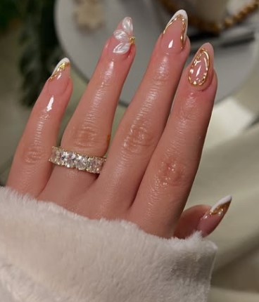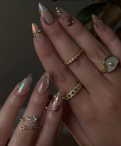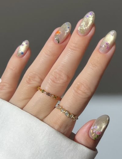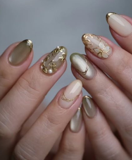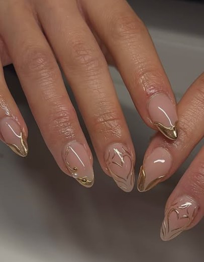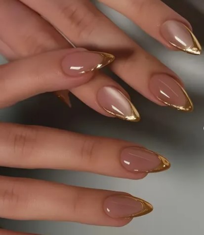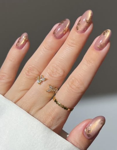 Gold foil over nude or blush nails adds texture and luxury. It’s trendy but still refined.