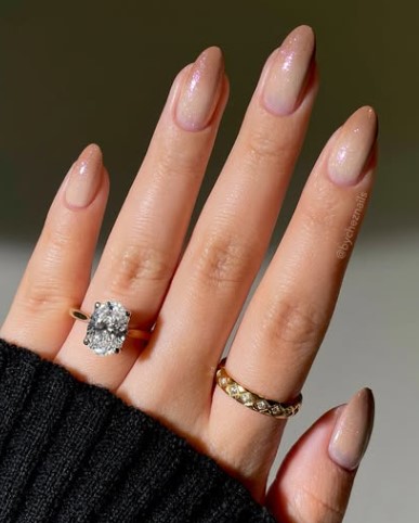 Clear nails with encapsulated glitter or tiny gems feel unique and trendy. They look beautiful from every angle.