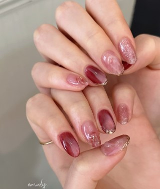 If you love darker tones, deep burgundy is bold and elegant. A high-gloss finish makes it look extra rich.