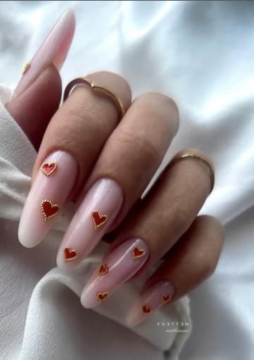 Whether you want extensions or to color your natural nails, these red and gold Valentine nails offer a wide range of chic and heart-stealing styles to choose from.