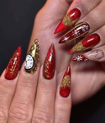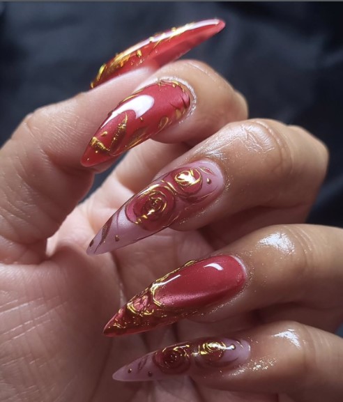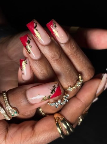 Red and gold Valentine nail styles are all about using bold, romantic colors to stand out.