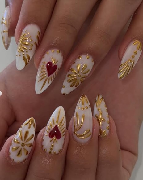 These Red and Gold Valentine Nails Are Breaking Hearts Everywhere!