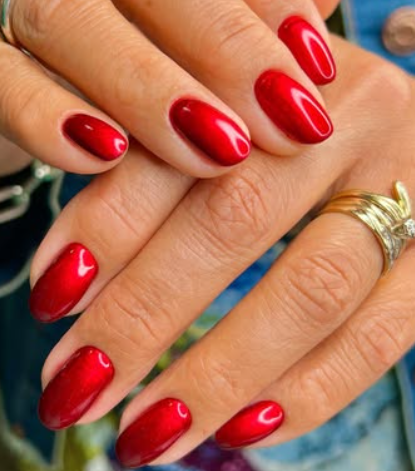 16. Shiny Metallic Red Nails